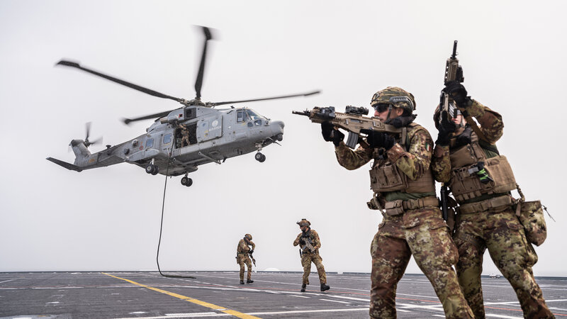 In March, a U.S. Marine Corps general aboard an Italian aircraft carrier floating in an Arctic fjord directed French troops to launch an amphibious assault from a Dutch ship to repel the occupation of Norway.