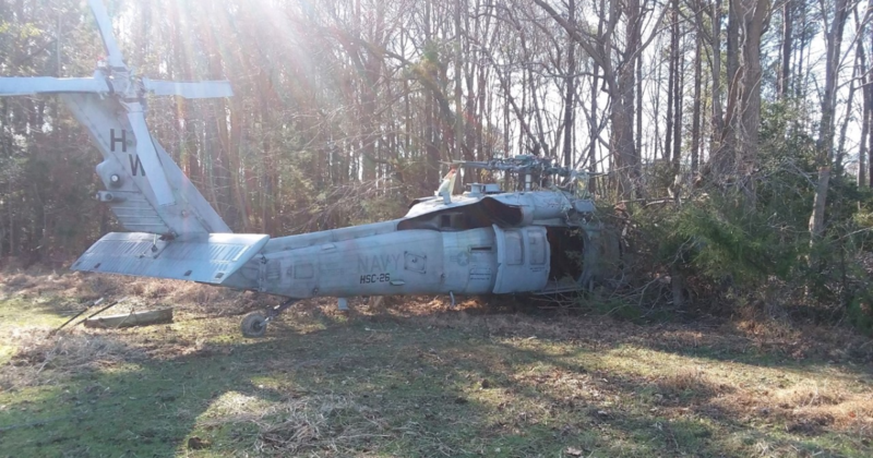 One person suffered non-life-threatening injuries after a Navy helicopter crashed on Oakes Lane in Isle of Wight County, Virginia, according to Virginia State Police.