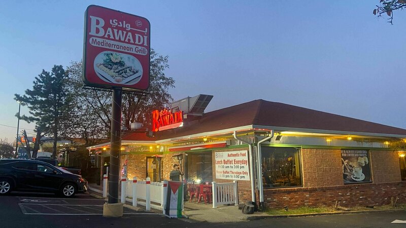 The line for Bawadi Mediterranean Grill went out the door and around the building on a crisp Monday night in the suburbs of Washington D.C. Inside the Palestinian restaurant, servers dodged a mass of diners to replenish hummus, baba ganoush and chicken shawarma on the buffet table.
