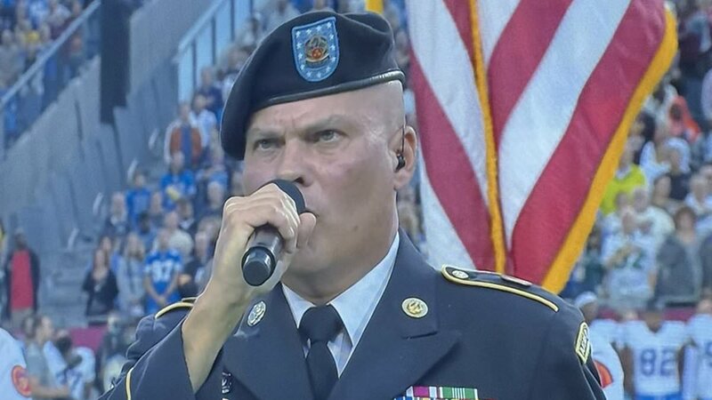 NFL fans divided on troop's national anthem before preseason opener