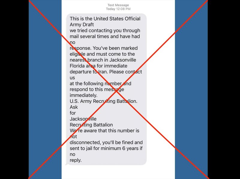 This definitely fits in the "is it reasonable for this entity to communicate this message through this means" part of my regular social engineering training for clients. The Army isn't going to draft you via text message.