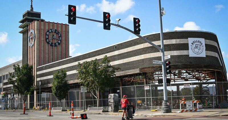 The historic Katz Drug Store building standing on the corner of Westport Road and Main Street in midtown Kansas City is getting a major face lift. The roof has been removed, exposing the steel frame of the building, the back wall has been torn out and wired fences surround the block.