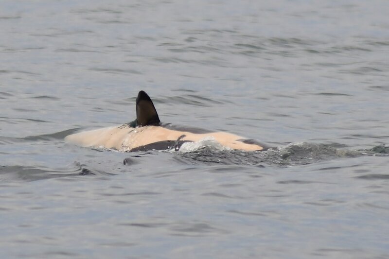 But on Thursday, when a baby orca surfaced in Puget Sound and rolled over on its side, biologist Maya Sears was able to photograph its white underside from a small research skiff.