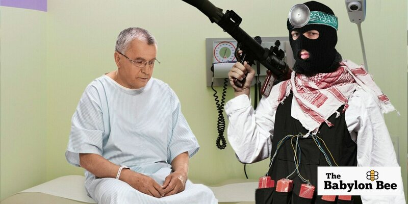 Palestinian at Hospital for Colonoscopy Not Sure About This Doctor Holding Grenade Launcher