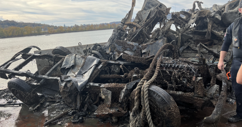 Callie Schaser with the nonprofit group says they arrived in the area last Friday with a barge and an excavator and have pulled nine vehicles from the water already. She says for the last months, divers have been finding sunken cars using sonar and marking them with buoys. Schaser says they marked about 20.