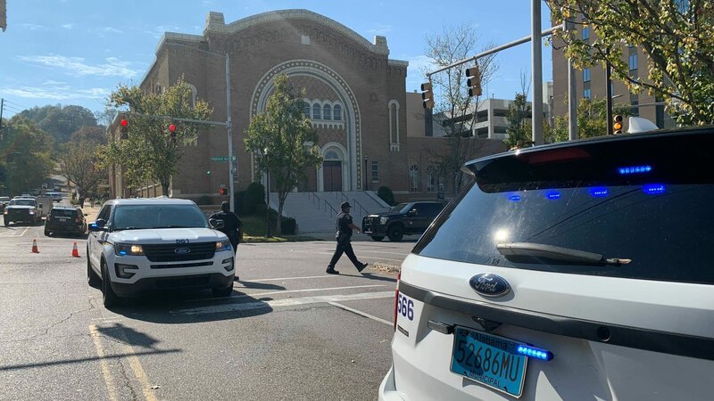 Authorities say a propane tank and clothing was found on fire near the synagogue early this morning, and that the flames were put out before 6 a.m. There was no damage to the building. Around 8:30 a.m., police say the Regional Security Advisor for the Birmingham Jewish Federation, Jeff Brown, was notified about an unattended package. Brown identified the package as a backpack and notified Birmingham Police and the FBI. The Birmingham Police bomb squad unit transported the package to an undisclosed location, where they determined it did not contain any explosives.
