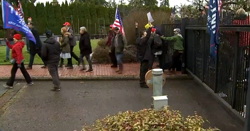 Protesters break through the gates into Washington Governor Jay Inslee's mansion