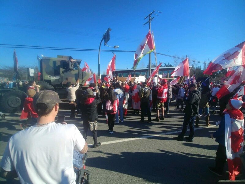 Protesting Vehicles Break Through Police Roadblock at Border Connecting BC and Washington State,...