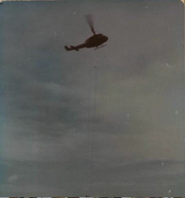 SGT Carl Blas I too have a similar photo somewhere of 3 guys hanging from a rope coming into our firebase.