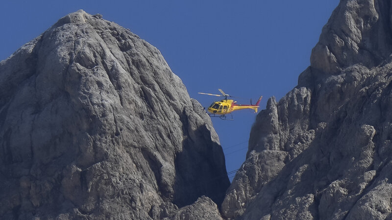 After rain hampered the search Monday, sunny weather on Tuesday allowed helicopters to bring more rescue teams up to the site on the Marmolada glacier, east of Bolzano in the Dolomites mountain range.