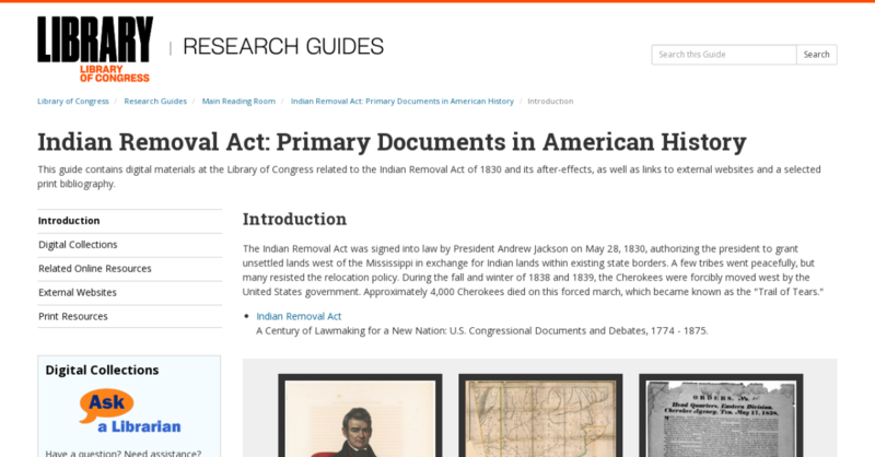 Research Guides: Indian Removal Act: Primary Documents in American History: Digital Collections