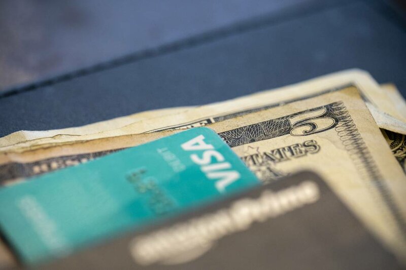 U.S. currency and credit cards sit on a table at a restaurant in New Orleans on Aug. 11, 2019. (Jenny Kane/AP)