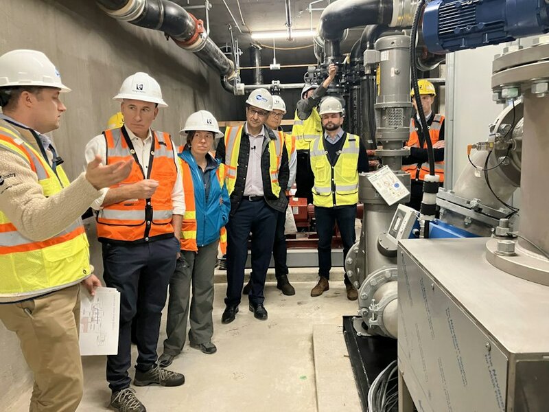 King County’s wastewater runs through underground pipes between 65 to 70 degrees. The buildings will tap into the county’s sewage pipes, and filter out solid waste. Then the warm filtered sewage pipes will be lined up next to clean water pipes so it can transfer the heat.