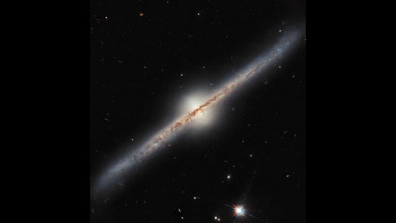 But besides the prolonged methods used to create it, it's also an unusual image on its face. Spiral galaxies — which account for about 60% of all galaxies in the universe, according to the European Space Agency — are, by chance, typically seen face-on when viewed from the solar system. That’s why spiral galaxies are typically associated with vivid spiral arms, which can only be seen from a face-on vantage. However, UGC 10043 is viewed edge-on, with its rings seemingly flattened into a line. This unique angle gives astronomers the chance to see how spiral galaxies are structured in 3D.