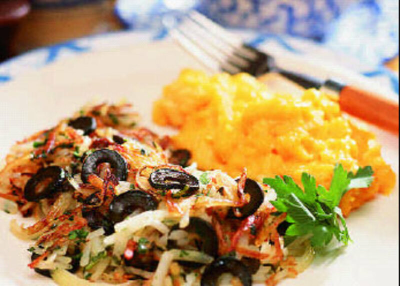 I like plain crispy Hash Browns. Would not have thought to add any type of olives to hash browns, but will now. Mushrooms would be good too.