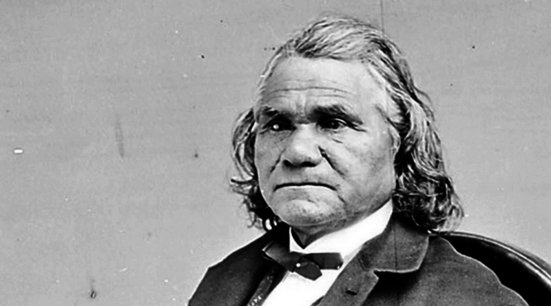 The only Native American to be fully promoted to the rank of General in the Civil War, Stand Watie was born Degataga, meaning "Stand Firm" in the Cherokee language, and baptized as Isaac in Georgia to a man named David Uwatie and his mixed-race wife, Susan Reese. "Stand Watie" is actually a combination of his English and Cherokee names. Like many children of wealthy Cherokee planter families, Watie grew up bilingual and received a Western-style education from local Christian missionaries. At the time, the Cherokee Nation was considered by many Anglo-Americans as one of the "Five Civilized Nations," along with the Chickasaw, Choctaw, Muscogee and Seminole, for their adoption of certain Western cultural customs such as centralized government, agriculture, Christianity, ability to speak English, as well as the use of African slavery (the Cherokee, of course, had been practicing agriculture for centuries before Europeans arrived in North America, and they were far from the only Native group to do so). This did mean, however, that these tribes had close diplomatic relations with the United States government, and existed as semi-sovereign nations for many years.