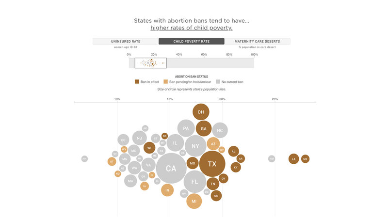 So are states prepared to pay for the infrastructure needed to support these parents and children? The data paints a grim picture for many families: Mothers and children in states with the toughest abortion restrictions tend to have less access to health care and financial assistance, as well as worse health outcomes.