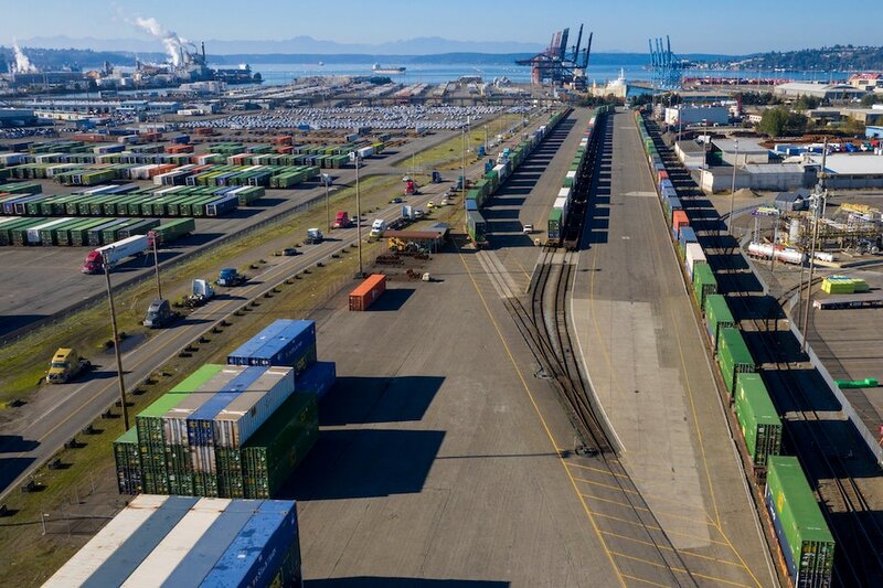 Switchers maneuver railcars around the tight curves of the rail lines at the Port of Tacoma before handing them off to the larger locomotives that haul freight around the country.