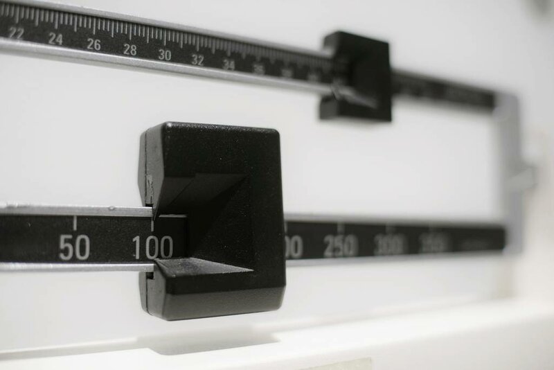 This April 3, 2018 file photo shows a closeup of a beam scale in New York. (AP Photo/Patrick Sison, File)
