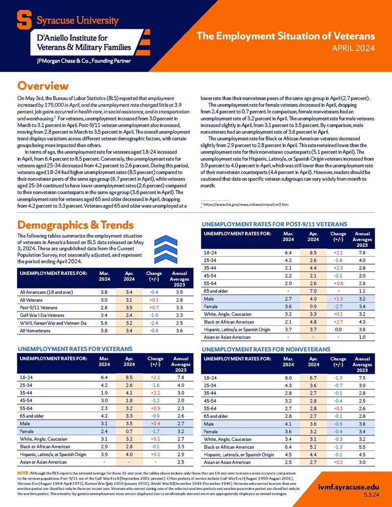 The Employment Situation of Veterans – April 2024 - D'Aniello Institute for Veterans and Military...