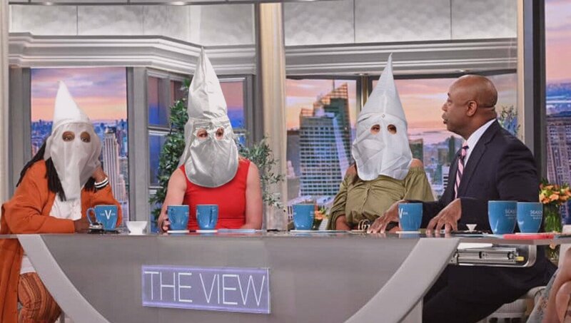 The view is a left wing useless piece of radical culture!!! The Klu Klux Clan head mask is a reflection of Racial Bigotry IMHO, and Tim Scot should have made a brief statement about it & left the Set!!!