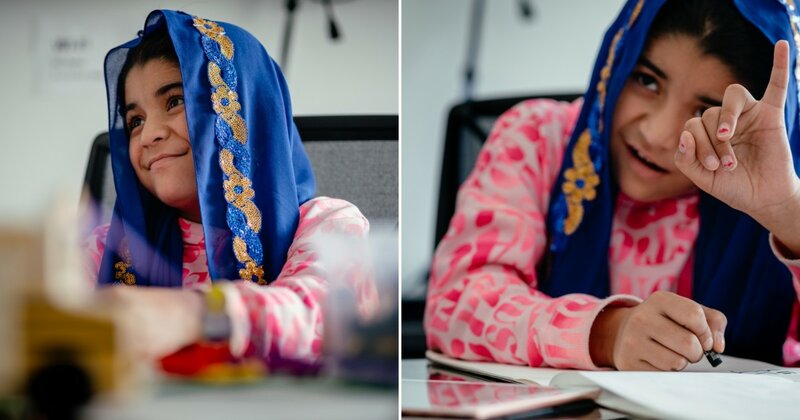 Mahbuba loves recess. Sitting in front of an overstuffed toy bin, the 6-year-old Afghan girl picks out a small collection of wooden dolls. She gives each doll a name that she signs with her hands.