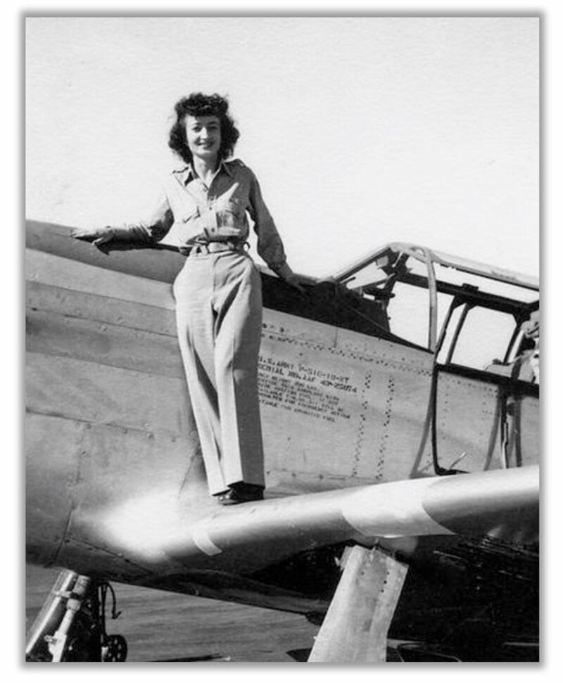 ILLUSTRATIONS: (1) WASP Florene Watson at the controls of a P-51D at the North American Aviation factory in Inglewood, Calif., prepares for a ferry flight to a USAAF base. (2) WASP Ruth Dailey prepares to ferry a P-38G Lightning for delivery to the USAAF. (3) WASP Barbara Jane Erickson gets some last-minute instructions from Evelyn Sharp before ferrying an A-36 Apache (forerunner of the P-51 Mustang) to turn over to the USAAF. (4) The WASP mascot,"Fifinella." (5) WASPs pick up P-38s from the Lockheed factory in Burbank, Calif., to deliver to the USAAF. (6) WASP Betty Gillies preflights a P-47D before delivering it to the USAAF. (7) WASPs Frances Green (from left), Margaret Kirchner, Ann Waldner and Blanche Osborn head for Lockbourne Army Airfield, Ohio's operations building after ferrying a Boeing B-17E to the base. (8) WASP Violet 'Vi' Thurn Cowden stands outside the cockpit of a USAAF A-20 Hudson.