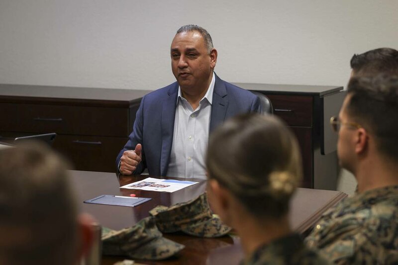 Under Secretary of Defense for Personnel Gilbert Cisneros Jr. speaks with Marines with Marine Corps Air Station Miramarin San Diego, Calif., on Dec. 2, 2022. (Lance Cpl. Jose S. GuerreroDeLeon/Marine Corps)