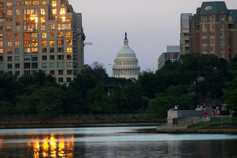 The Capitol dome in Washington, D.C., is seen from the Tidal Basin at sunset on Aug. 2. (Colin Demarest/C4ISRNET)