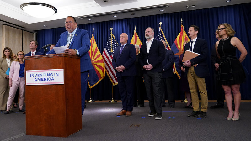 The crowd was a who's who of the western water world, including top Biden administration officials, the head of Arizona's powerful water department, the state's Governor Katie Hobbs, and its senior Senator Kyrsten Sinema.