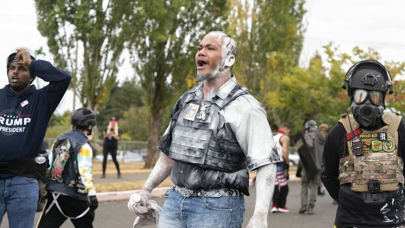Miles Furrow, 41, a Proud Boy who was photographed beating a man in the front seat of a pickup truck Aug. 22, was charged with six counts of assault, one count of unlawful use of a weapon and one count of riot.