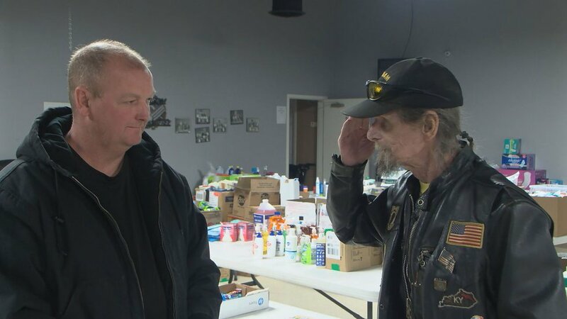Veteran receives checks from several AMVETS Posts to help after loss of home last month during...
