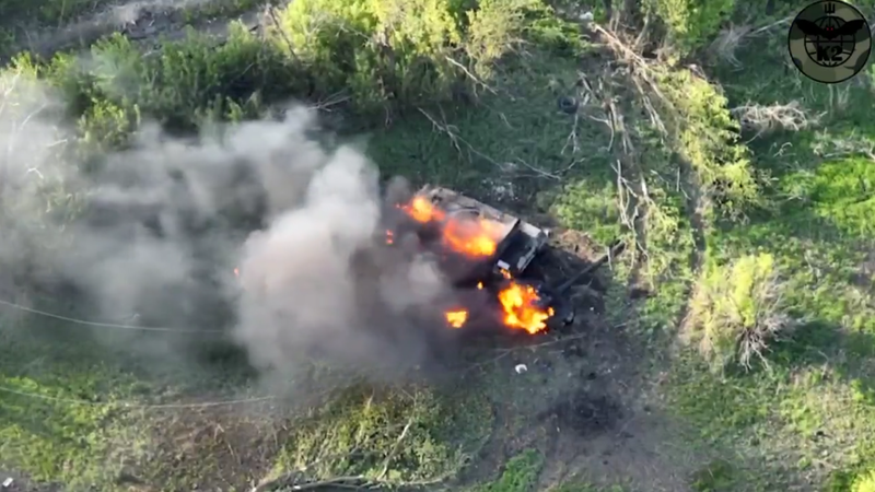 The video, released by the Ukrainian 54th Mechanised Brigade on Telegram, shows drone footage of a moving tank coming under attack.