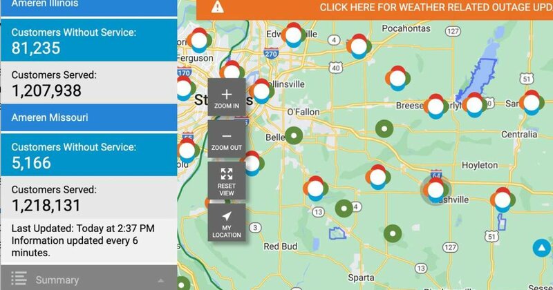 More than 2,500 residents in the Nashville area were still without power on Saturday afternoon, Ameren’s outage map showed.