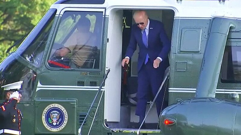 WATCH: Biden hits head while exiting Marine One hours after getting ‘sandbagged’ at Air Force...