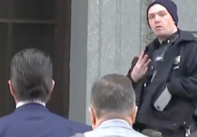WATCH: Cop Flashes White Power Sign At Don Jr. On Courthouse Steps