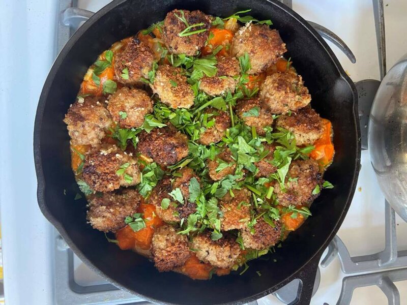 "Years ago on a trip to visit friends in Spain, I experienced the tradition of tapas for the first time. Sitting at an old oak bar in Granada, we ordered small glasses of the house sherry. With it came plates of anchovies soaked in vinegar, tiny green peppers fried in olive oil sprinkled with coarse sea salt, cubes of fried potatoes with garlicky aioli, a thick potato tortilla (more like an omelet than a Mexican tortilla) and shrimp swimming in garlic, olive oil, smoky paprika, and flakes of spicy peppers. Crusty bread was served alongside all the little plates. I fell in love with this way of eating: trying lots of new foods and never filling up on any one dish.