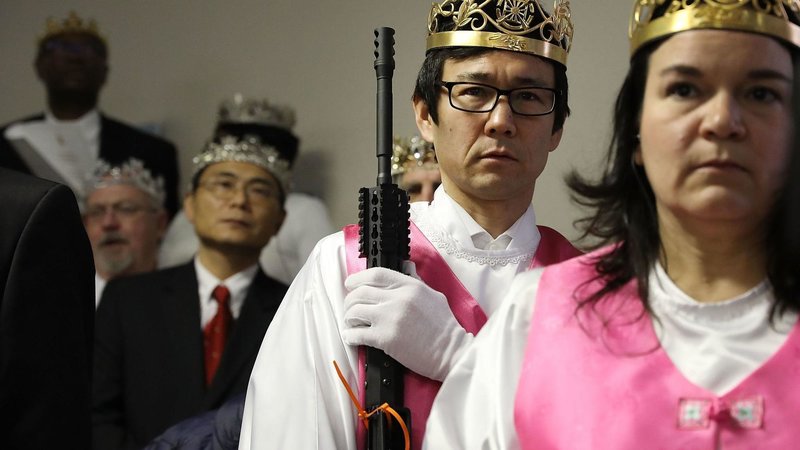 Worshippers clutching AR-15 rifles hold commitment ceremony