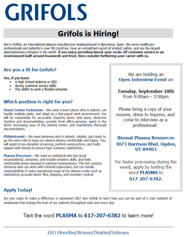 Kayla Gerick: Thank you so very kindly, Kayla, for letting us know that Grifols is holding a hiring event; next week!