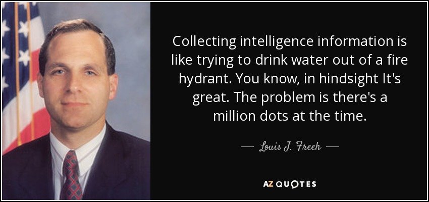4. Louis J. Freeh 'Collecting intelligence information is like trying to drink water out of a fire hydrant. You know, in hindsight It's great. The problem is there's a million dots at the time.'