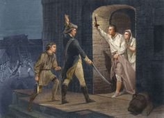 Silently led by Ethan Allen on the right and Arnold on the left, they approached the gate. Their intelligence was wrong, it was locked. Quietly, they worked on the gate. The lone sentry, just beyond the gate, had fallen asleep. Arnold, who was smaller, made it through first. Amidst the noise of the men slipping through the gate, the guard awakened. Terrified, he fired his musket. It had been a damp night, and it misfired. The soldier threw down his weapon.