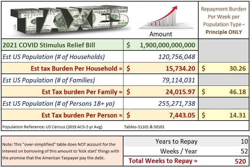 Thank you my friend CPO Nate S. for posting a high level summary of the impact of the $1.9 Trillion "COVID Relief" Bill.