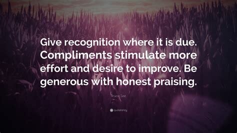 “Give recognition where it is due. Complements definitely stimulate more effort and desire to improve. Be generous with honest praising.” — Bruce Lee
