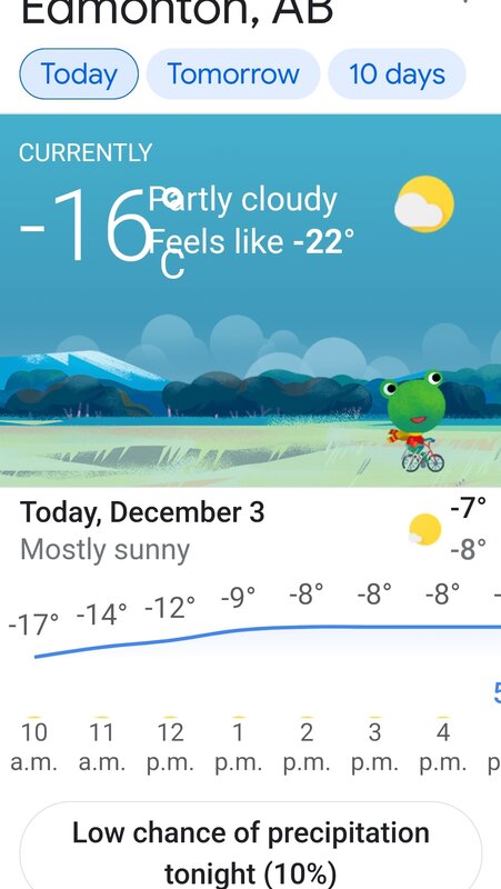 Temperature: -11.0°C ( 12°F)