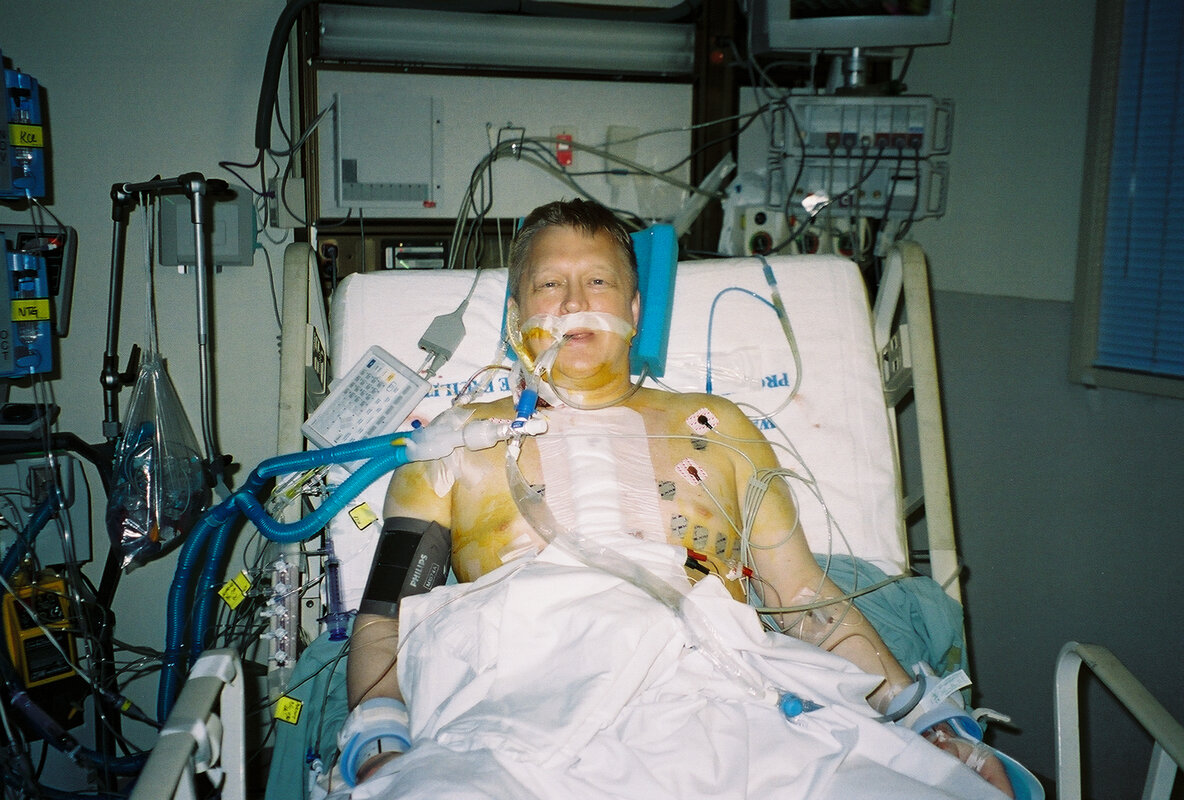 4. 2003-03-12 Early March 12 2003 -Post mitral valve repair surgery - just becoming alert in the presence of many medical people and my darling wife.