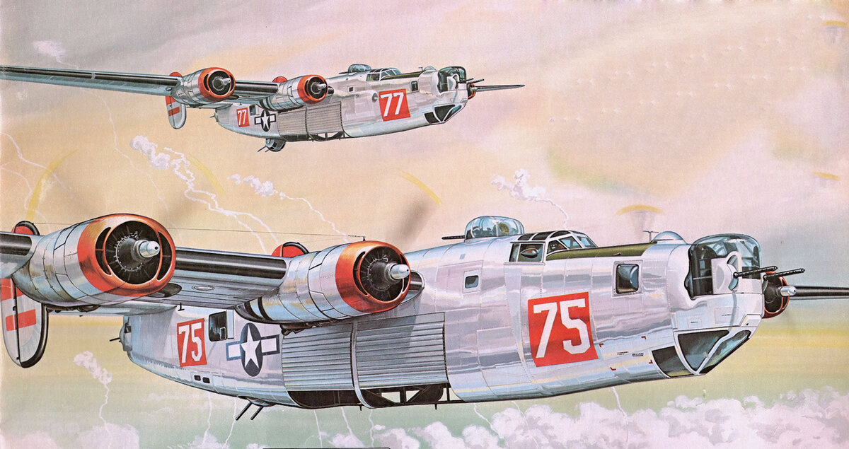 ILLUSTRATIONS: (1) 767th BS, 461st BG B-24Js prepare to release their bombs over Essen, Germany. (2) A Fw-190D attacks a 459th BG B-24J over Germany. (3) 34th BG B-17Gs in formation high above Germany en route to Essen. (4) 91st BG B-17G "Shoo, Shoo, Shoo Baby" leads the high squadron to Essen, Germany. (5) 100th BG B-17Gs on the Essen mission. (6) These 306th BG B-17Gs were among the 1,000 that hit Essen. (7) 326th BS, 92d BG B-17G "City of Ft. Worth" returns to England after the Essen raid. (8) 337th BS, 96th BG B-17Gs plow through heavy flak over Essen.