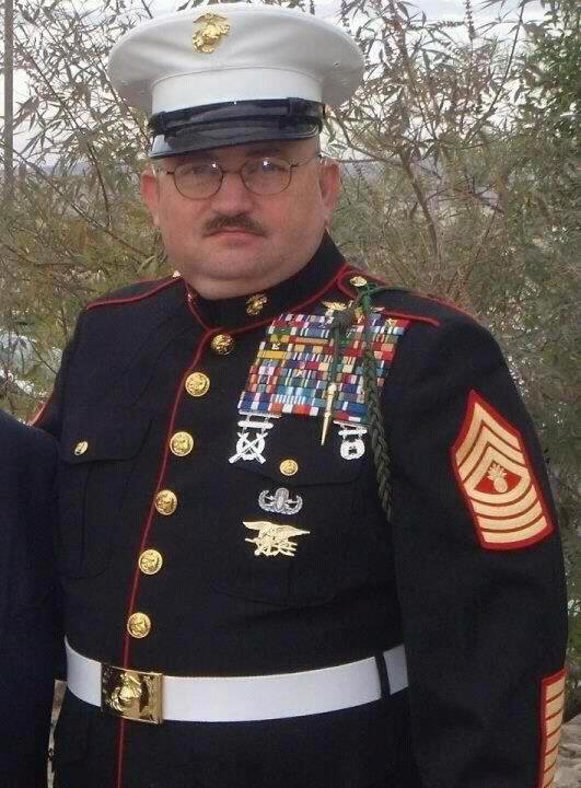 Along with a Navy Seal Trident He is wearing a Navy Bomb disposal Badge and an Army Halo High Altitude Parachutist