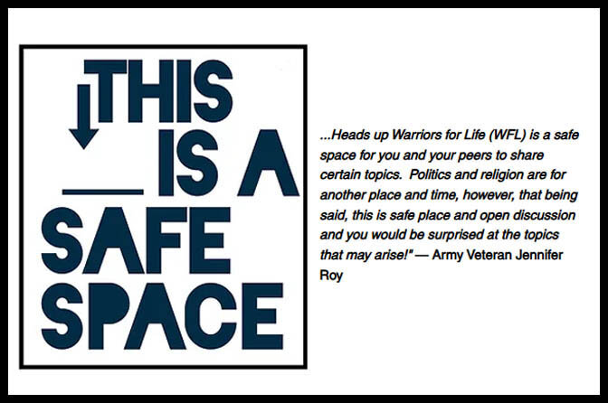 ...Heads up Warriors for Life (WFL) is a safe space for you and your peers to share certain topics. Politics and religion are for another place and time, however, that being said, this is safe place and open discussion and you would be surprised at the topics that may arise!" — Army Veteran Jennifer Roy