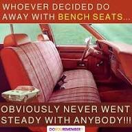 My older brother called Bench Seats: "The stairway to having to go to Confession."- We were Catholics. My Other brother said if you were named after where you were conceived, we would all have names like: Chevy, Ford, Pontiac, Buick, and in rare cases: Studebaker. And our middle names would all be: Bench Seat.