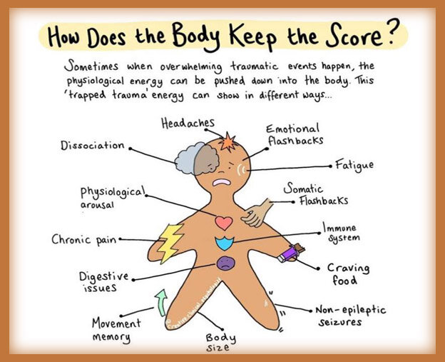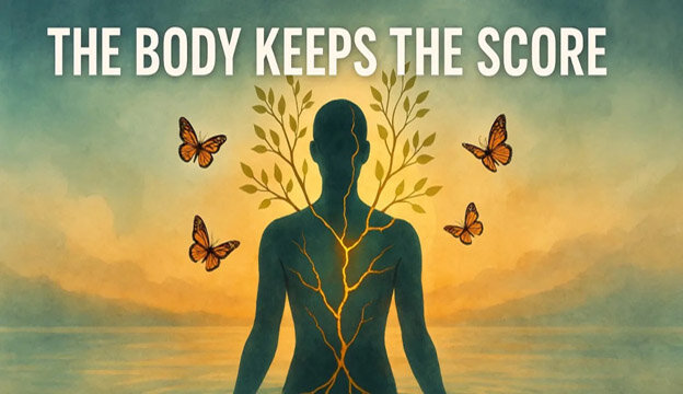 "The Body Keeps the Score," means trauma physically changes the brain and body, storing memories non-verbally and triggering overwhelming reactions (fight/flight/freeze) long after the event, impacting everything from posture and sleep to chronic pain and emotional regulation, requiring holistic healing beyond just talking to resolve these deep-seated bodily imprints.